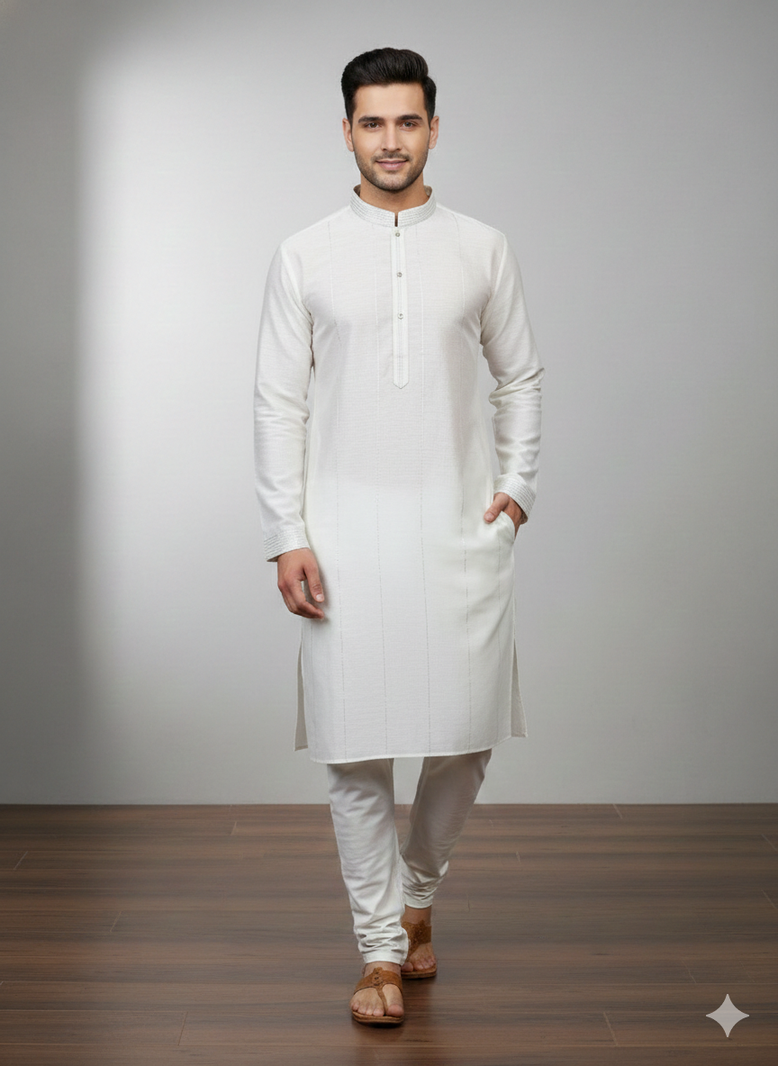 Ivory color mens Lucknowi Kurta with white pant